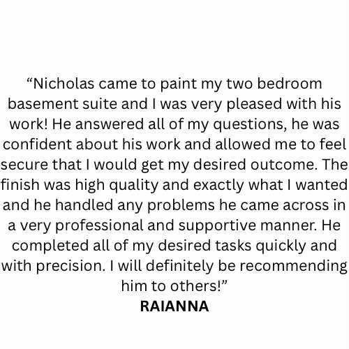 Nicholas came to paint my two bedroom basement suite and I was very pleased with his work! He answered all of my questions, he was confident about his work and allowed me to feel secure that I would get my desired outcome. The finish was high quality and exactly what I wanted and he handled any problems he came across in a very professional and supportive manner. He completed all of my desired tasks quickly and with precision. I will definitely be recommending him to others!