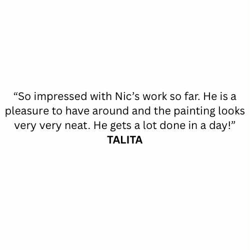 So impressed with Nic’s work so far. He is a pleasure to have around and the painting looks very very neat. He gets a lot done in a day!
